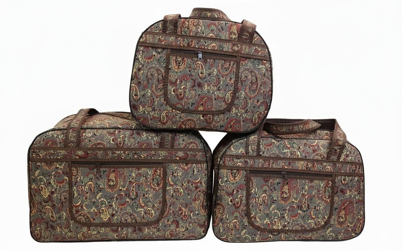 نزدیک به ۱۰ سال است که در دنیای زیبای کیف‌های سنتی مسافرتی با شما همراهیم. هر کیف، فقط یک وسیله نیست؛ بخشی از داستان سفر شماست. کیف‌های سه‌تکه‌ مسافرتی ما، ترکیبی از اصالت، هنر دست و کاربرد هستند؛ همراهی مطمئن برای هر مقصد.